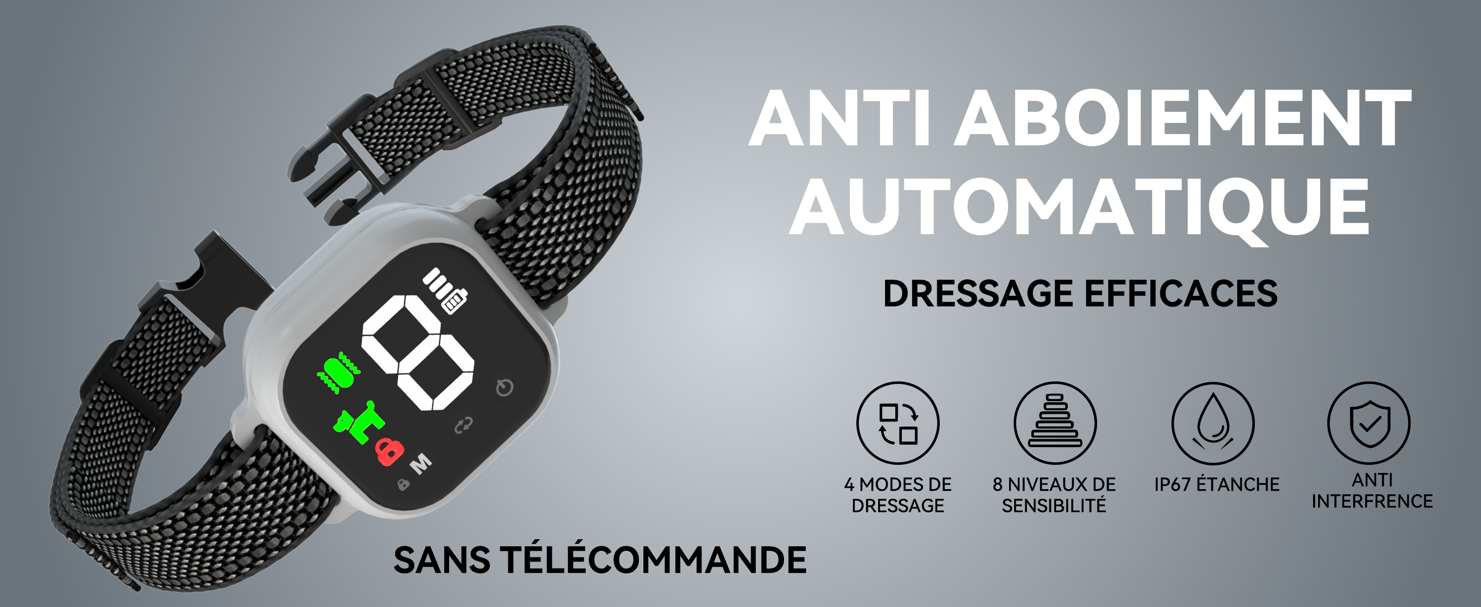 Le collier fonctionne en mode automatique sans télécommande. Le collier ne s'active que lorsque le chien qui le porte aboie, offrant à votre chien un dressage opportune et correct.