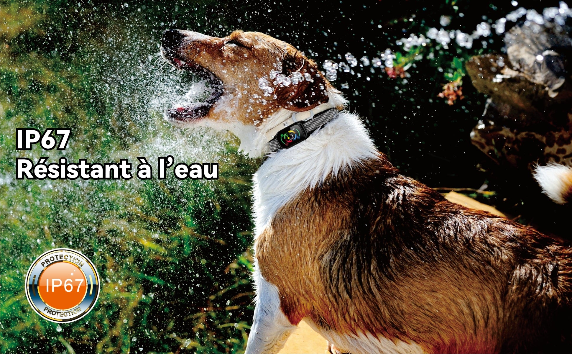 Le collier est résistant à l’eau IP67, il est fabriqué dans un excellent matériau étanche. Cela permet à votre chien de se baigner librement avec le collier. Ce qui le rend idéal pour les chiens qui aiment jouer dans l’eau.